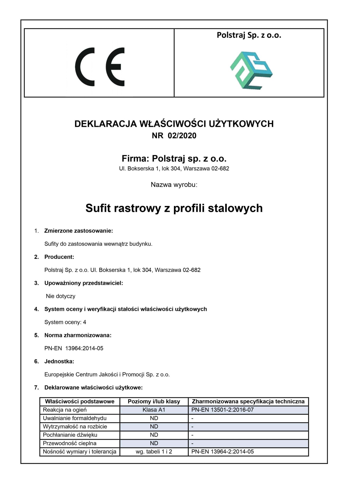 Der polnische Hersteller Polstroj hat eine breite Palette von Rasterdecken in verschiedenen Mustern Dank einer breiten Palette von Farben kann die Decke in jedem Raum angepasst werden. Wir freuen uns, qualitativ hochwertige Decken zu den niedrigsten Preisen auf dem Markt zu produzieren und zu liefern.