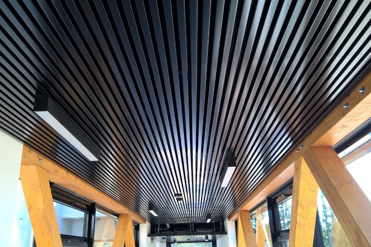 Lattendecken lassen sich hervorragend mit anderen Arten von abgehängten Decken kombinieren und bieten viel Raum für interessante Gestaltungslösungen.