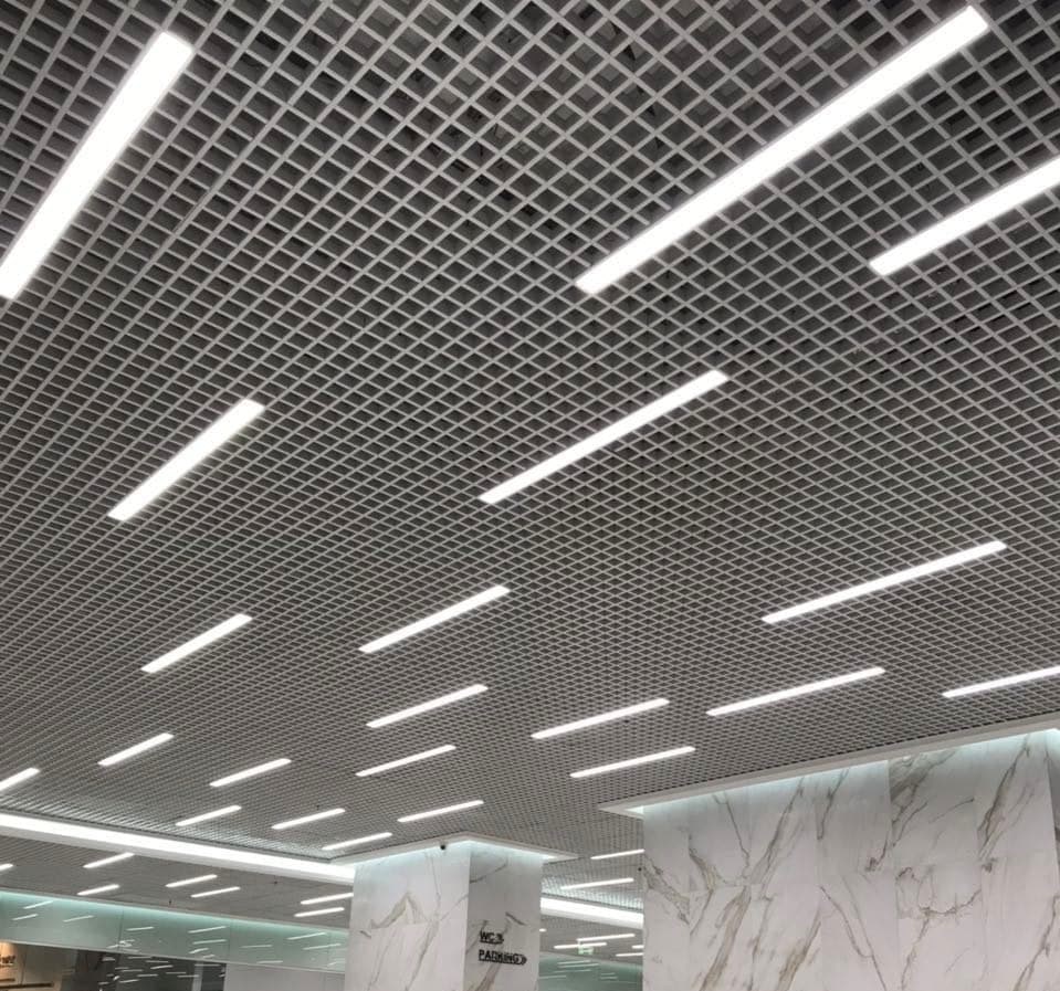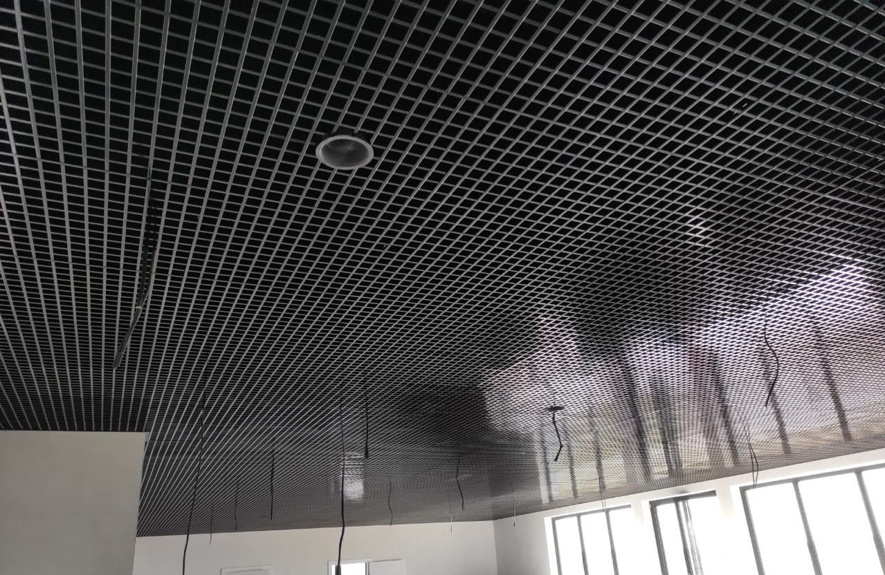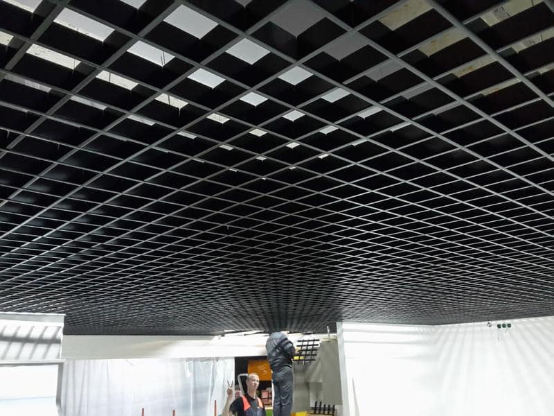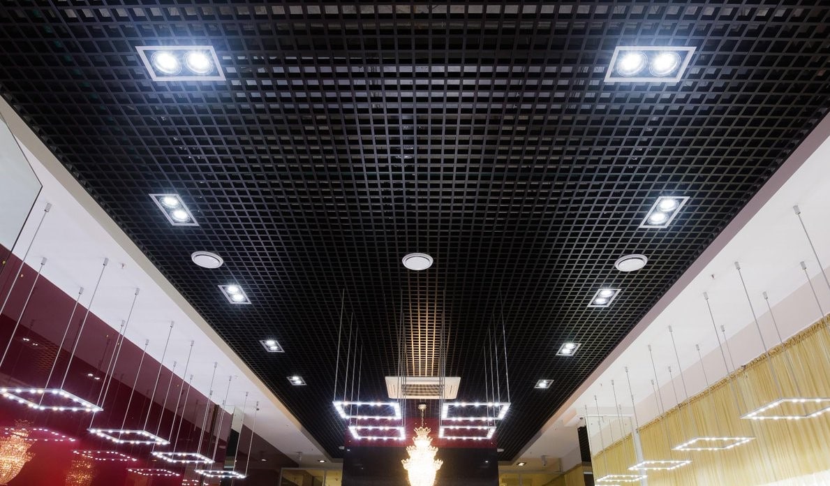 Die Rasterdecke ist eine neue Art von abgehängter Decke, die es dem Architekten ermöglicht, dank einer breiten Palette von Farben und Texturen der Deckenelemente originelle Designlösungen für Räume zu schaffen. Es handelt sich um eine sehr interessante, ungewöhnliche architektonische Lösung, die den Innenraum vervollständigt und verschönert und dazu einen Hauch von Innovation verleiht. Es handelt sich um eine sehr vielversprechende Art von abgehängten Decken, da sie viele Vorteile gegenüber anderen Deckenarten hat. Der Raum zwischen der Decke und der Rasterdecke ist gut und uneingeschränkt belüftet. Rasterdecken haben einen hohen Brandsicherheitsfaktor und sind aus rostfreiem Stahl mit einer Dicke von etwa 0,25 mm hergestellt, so dass sie in relativ feuchten Umgebungen verwendet werden können.